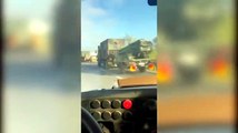 Impressionante colonna di mezzi militari sulla 130 tra Elmas e Assemini
