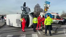 Vignate, furgone si ribalta alla rotatoria