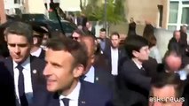Macron al mercato vicino Parigi, la prima uscita dalla rielezione (con lancio di pomodori)