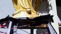 Cagliari, statua pericolante rimossa dalla cupola della chiesa