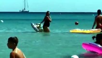 Un delfino nuota vicino alla riva a Villasimius