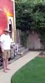 Un papy fait la roue dans le jardin