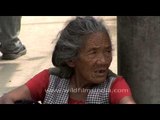 A weathered old lady on a road in Nepal