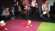 En Ukraine, des nourrissons, habillés en père Noël, participent à une course (à quatre pattes)