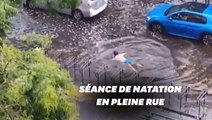 Ce nageur improvise une brasse en plein Paris après l'orage