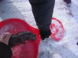 Un gars se fait tirer par un 4x4, couché dans la neige... Balade en luge sans luge!