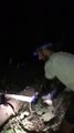 Entraînement de nuit au découpage d'un tronc à la hache