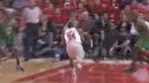 NBA Derrick Rose misses the layup but Tyrus Thomas is there