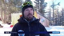 Départ express des chiens de traineau au Plateau de Beille.<br />Departure of sled dogs at Plateau de Beille.