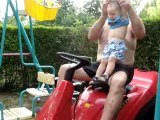 moi et oceane sur le tracteur de papi