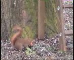 Un écureuil n'arrive pas à manger ses noisettes !!!