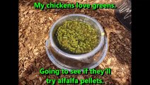 My chickens like greens. I try to see if they'll eat alfalfa pellets.