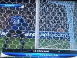 Sur une base PES 5 + patch Crashoverall Evolution 1.08 (www.crashoverall.net), je rajoute ou modifie des sons pour les scènes d'entrée de joueurs et sur les buts (speakers, chants ou commentaires télé, musique officielle d'entrée de stade etc..) <br />Ici l'entrée de l'AS Roma avec la chanson Roma Roma Roma chantée par les supporters.