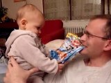 Nathan ( 3 mois ) rigole avec papa