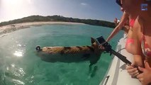 Pigs sweaming Exumas Island bahamas