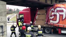 La un pas de tragedie Momentul in care sofer de TIR e cat pe ce sa spulbere o masina VIDEO