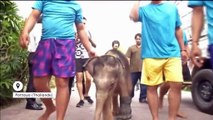 Thaïlande : un éléphanteau fait des exercices dans l'eau pour soigner une de ses pattes