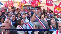 Conflit alsthom. opération ville morte à Belfort-le tvg a l'arrêt-machine recouverte bâche. Affiche CGT. Blocage des axes routiers-file de camions. Banderoles de soutien aux grévistes. Table de négociations.<br /><br /><a href="http://www.ina.fr///video/CAA7901842101/alsthom-belfort-ville-morte.fr.html#xtor=AL-3" target="_blank" style="color:#0086b0;">Retrouvez ce media sur Ina.fr</a>