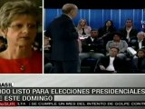 Los 135 millones de brasileños convocados para elegir al próximo sucesor del actual mandatario Luiz Inácio Lula da Silva, ya están listos para participar en la segunda vuelta de las elecciones presidenciales de este domingo, en una contienda donde la abanderada del Partido de los Trabajadores (PT), Dilma Rousseff se perfila como favorita frente su adversario, el socialdemócrata José Serra. teleSUR