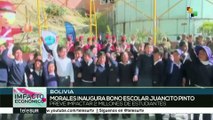 Miles de niños en Bolivia empezaron a cobrar el bono anual, con el que desde hace cinco años el gobierno del país reconoce la culminación de los estudios básicos. En todos los centros educativos de primero a octavo de primaria se empezó a pagar el bono Juancito Pinto, que este año beneficiará a casi dos millones de estudiantes. teleSUR http://media.tlsur.net//5/11/2010/19752/bolivia-reparte-bono-juanito-pinto-a-estudiantes-de-primaria/