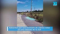 Advierten por una montaña de vidrios rotos en una rotonda de la 215