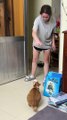 Matcha joue avec la poubelle