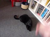 Un chat aide son chaton à attraper un jouet
