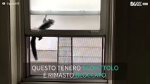 Scoiattolo in trappola tra la finestra e la zanzariera