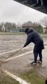 Atrs Pilou et Ludo rangent la bâche de la zone neutre