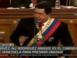 El presidente de Venezuela Hugo Chávez, durante la entrega del premio Rodolfo Walsh otorgado por la Universidad Nacional de La Plata, en Argentina, afirmó que gracias al fortalecimiento de relaciones entre Venezuela y Argentina, estamos construyendo una empresa mixta para la elaboración de barcazas por el río de la plata hasta el corazón de Bolivia, ese es un ejemplo de unión, lucha y de esfuerzos. teleSUR