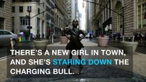 Who's that girl standing in front of the Wall Street bull?