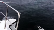 Dos delfines deleitaron a pasajeros de un barco turístico
