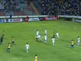 Santos survived a second-half onslaught from Mexican side America to advance to the quarter-finals of the Copa Libertadores.