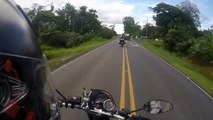 Un motard pense qu'il peut doubler au milieu... FAIL