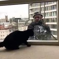 Ce chat suit tout les mouvements de son maître. Trop drôle !