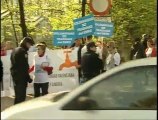 Declaraciones de los miembros de la Plataforma anticementerio de Zarra que se han concentrado ante las puertas del Palacio de La Moncloa, coincidiendo con la celebración del Consejo de Ministros, para protestar contra la posible ubicación del Almacén Temporal Centralizado (ATC) de residuos radiactivos de alta actividad y combustible gastado en la localidad valenciana.