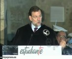 Imágenes del líder del PP, Mariano Rajoy, quien ha firmado en Santiago de Compostela el manifiesto en defensa del profesor para quien pide "respeto y reconocimiento".