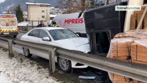 Lkw kippte in Buch auf Tiroler Straße zur Seite und prallte mit Pkw zusammen