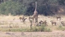 Des lions s'en prennent à une girafe !!