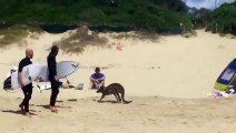 Canguro de paseo por la playa