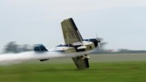 Fearless pilot touches ground with wing