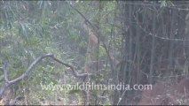 "Sambhar in Bandhavgarh National Park. Sambhar is a large deer native to southern and southeast Asia. The antlers are typically up to 110 centimetres (43 in) long in fully adult individuals. Sambar are nocturnal or crepuscular, with the males living alone for much of the year, and the females living in small herds. This footage is part of the professionally-shot stock footage archive of Wilderness Films India Ltd., the largest collection of imagery from South Asia. The Wilderness Films India collection comprises of thousands of hours of high quality broadcast imagery, mostly shot on HDCAM 1080i High Definition, HDV and Digital Betacam. Write to us for licensing this footage on a broadcast format, for use in your production! We pride ourselves in bringing the best of India and South Asia to the world... wfi @ vsnl.com and admin@wildfilmsindia.com.<br />"