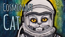 Cosmonaut Cat Watercolor Painting
