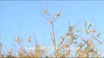 "Group of Sparrows in Rajasthan. Passer domesticus or the Common House Sparrow is becoming increasingly rare in Indian cities... The Chidiya or Gauriyya in Hindi. Rajasthan the land of Rajasthanis, is the largest state of the Republic of India by area. It encompasses most of the area of the large, inhospitable Great Indian Desert (Thar Desert), which has an edge paralleling the Sutlej-Indus river valley along its border with Pakistan. Jaipur is the capital and the largest city of the state. Geographical features include the Thar Desert along north-western Rajasthan and the termination of the Ghaggar River near the archaeological ruins at Kalibanga, which are the oldest in the subcontinent discovered so far. This footage is part of the professionally-shot stock footage archive of Wilderness Films India Ltd., the largest collection of imagery from South Asia. The Wilderness Films India collection comprises of thousands of hours of high quality broadcast imagery, mostly shot on HDCAM 1080i High Definition, HDV and Digital Betacam. Write to us for licensing this footage on a broadcast format, for use in your production! We pride ourselves in bringing the best of India and South Asia to the world... wfi @ vsnl.com and admin@wildfilmsindia.com.<br />"