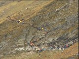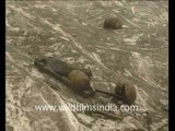 Skulls and bones sit on dirty ice at the edge of the high altitude glacial tarn of Roopkund, at the edge of the Nanda Devi Sanctuary in Garhwal, Uttarakhand. <br />This footage is part of the professionally-shot stock footage archive of Wilderness Films India Ltd., the largest collection of imagery from South Asia. The Wilderness Films India collection comprises of thousands of hours of high quality broadcast imagery, mostly shot on HDCAM 1080i High Definition, HDV and Digital Betacam. Write to us for licensing this footage on a broadcast format, for use in your production! We pride ourselves in bringing the best of India and South Asia to the world... wfi @ vsnl.com and admin@wildfilmsindia.com.