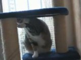 Un chat joue bizarrement avec une balle
