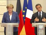 La France et l'Allemagne vont proposer de créer un "gouvernement de la zone euro" et d'instaurer une taxe sur les transactions financières, ont annoncé mardi le président Nicolas Sarkozy et la chancelière Angela Merkel, à l'issue d'un sommet très attendu par les marchés. Durée: 02:00
