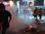 Clashes between Spanish police and anti-Pope protesters in Madrid turn violent. Rough Cut (no reporter narration).