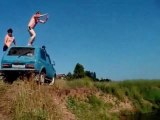 Betrunkener Russe nutzt seine Auto als Sprungbrett fAIL