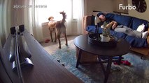 Camera startles dog